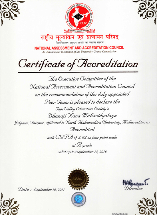 TAPI VALLEY EDUCATION SOCIETY'S DHANAJI NANA MAHAVIDYALAYA Faizpur, Tal.- Yawal, Dist.- Jalgaon. Maharashtra, Pin - 425 503. Ph. 02585 - 245236, Fax - 02585 - 245236 dnmfaizpur@gmail.com